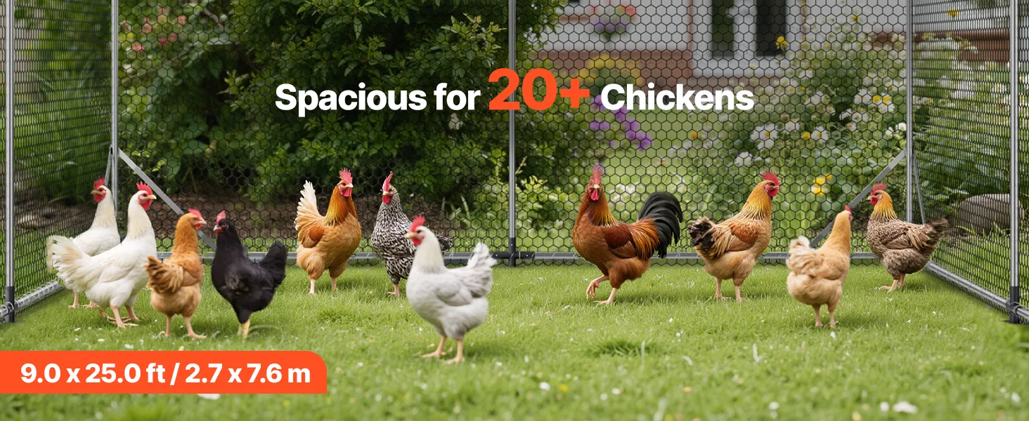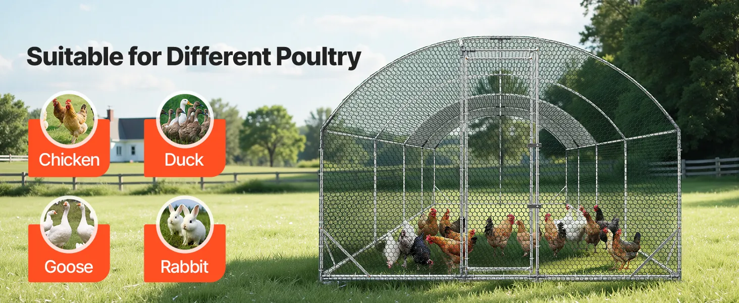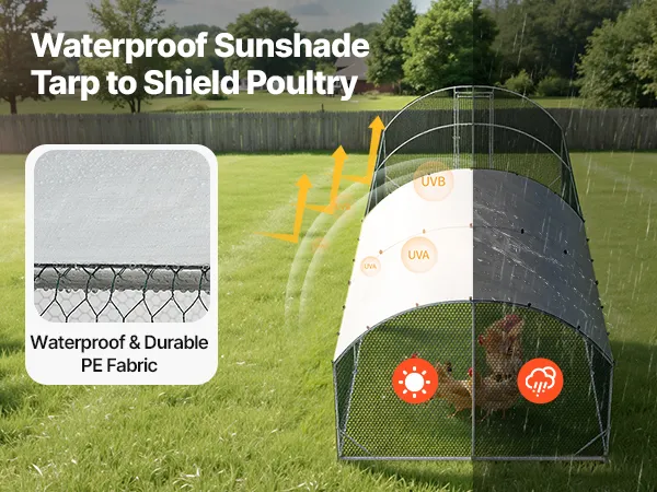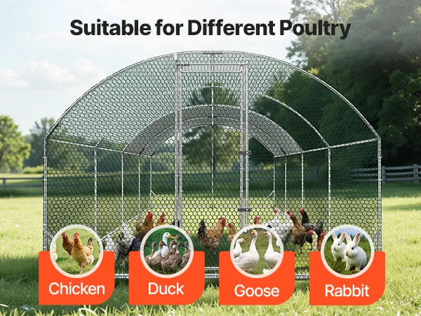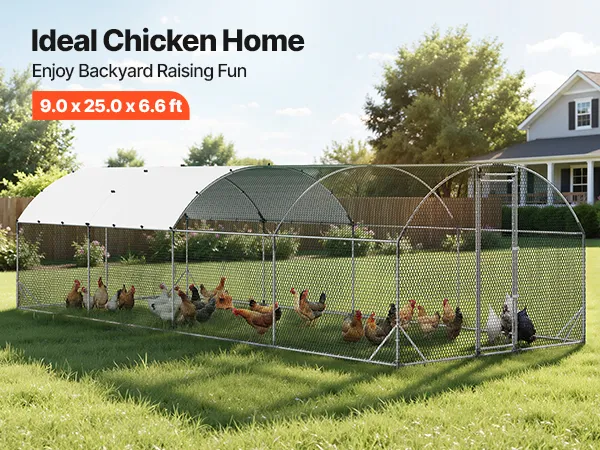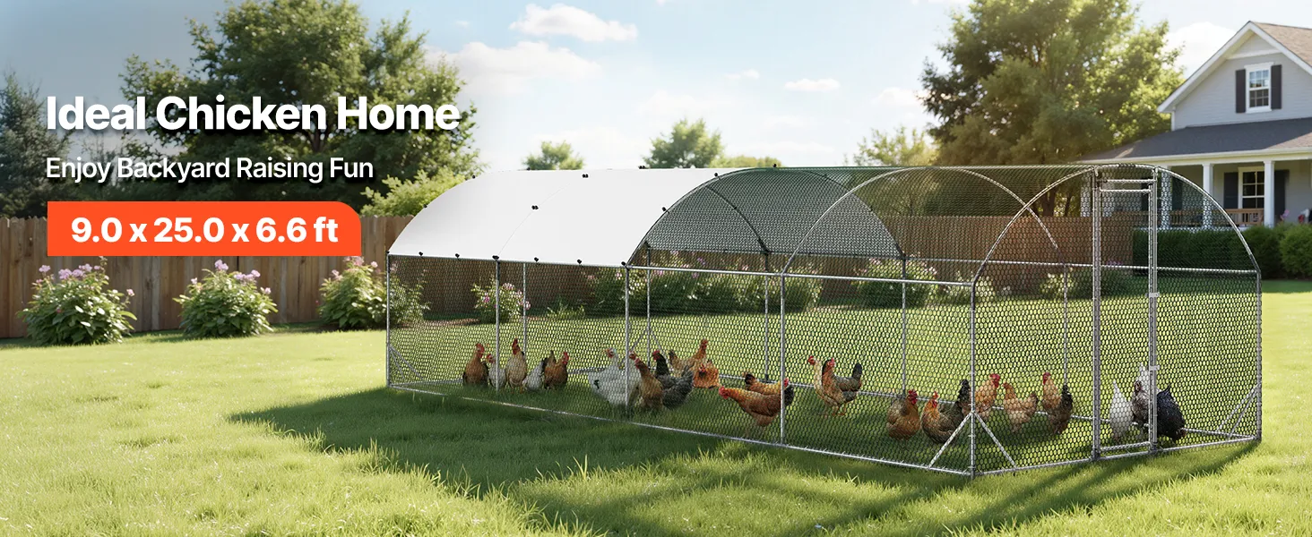 VEVOR Pollaio in Metallo di Grandi Dimensioni 2,7 x 7,6 x 2 m, Recinto per Polli con Copertura Impermeabile e Struttura Robusta, Gabbia per Pollame con Tetto a Cupola, Recinto per Anatre, Conigli