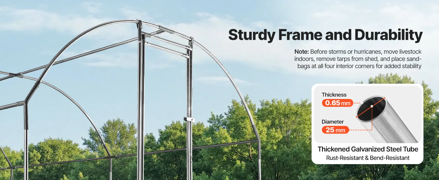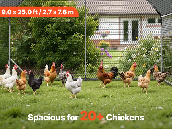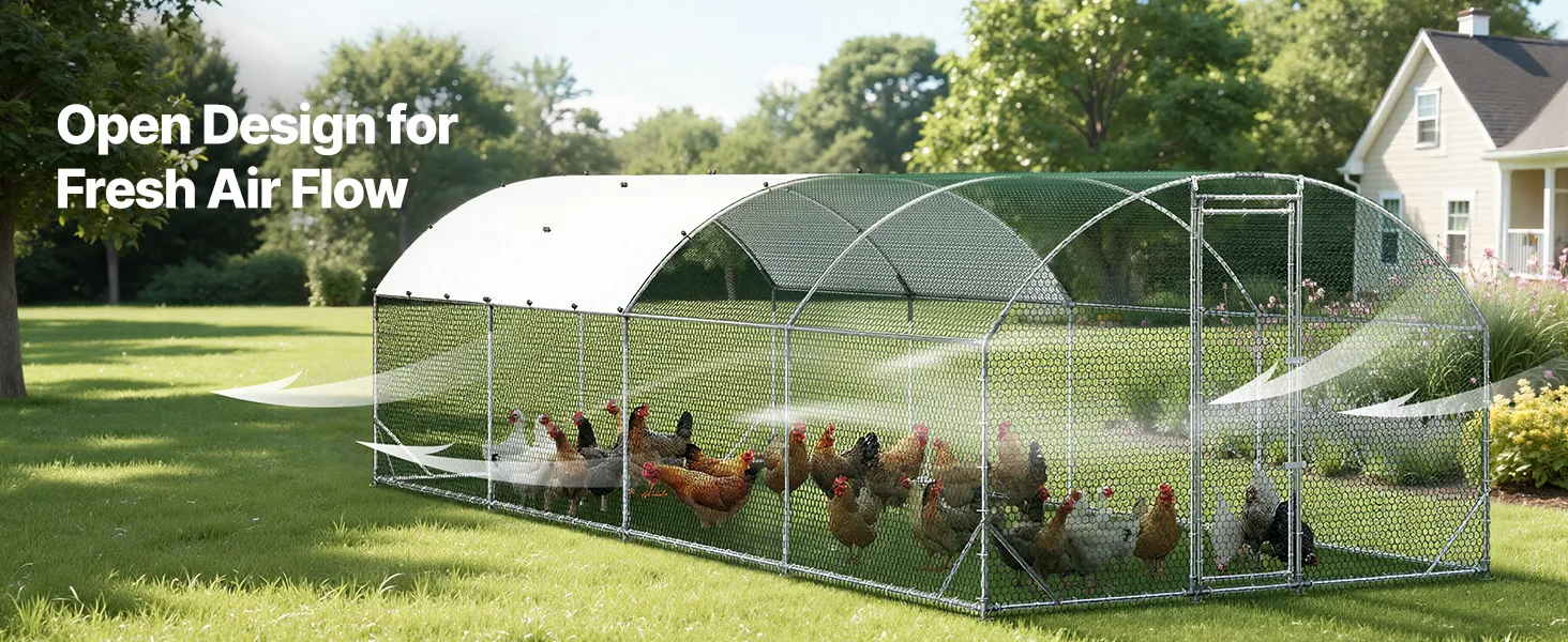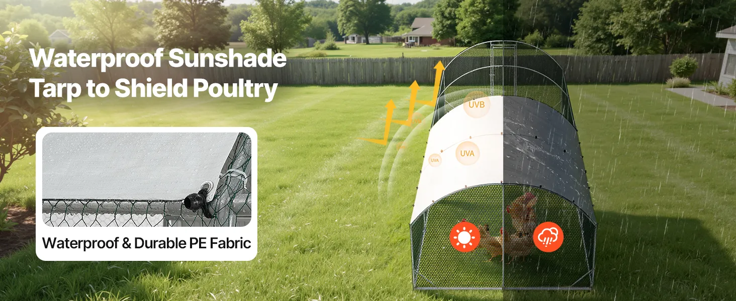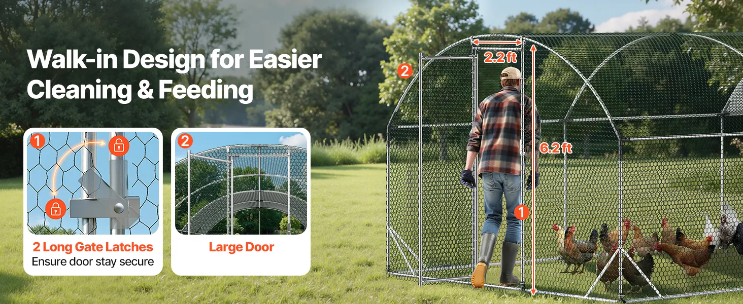 VEVOR Pollaio in Metallo di Grandi Dimensioni 2,7 x 7,6 x 2 m, Recinto per Polli con Copertura Impermeabile e Struttura Robusta, Gabbia per Pollame con Tetto a Cupola, Recinto per Anatre, Conigli