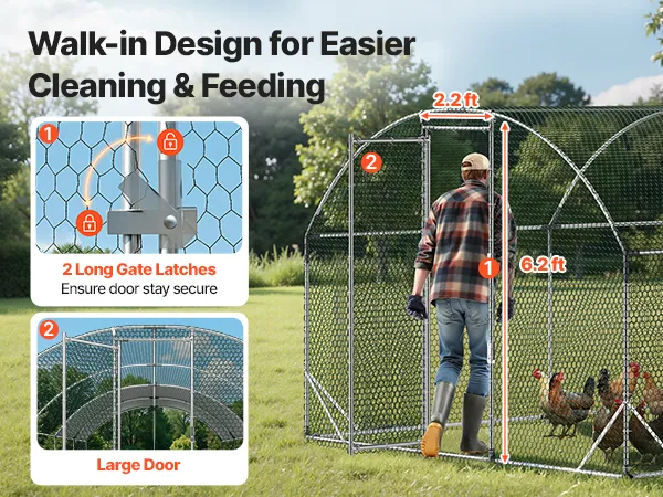 Ampio design walk-in: il grande pollaio presenta interni spaziosi che consentono ai polli di muoversi liberamente. Il design alto offre un facile accesso per l'alimentazione e la pulizia