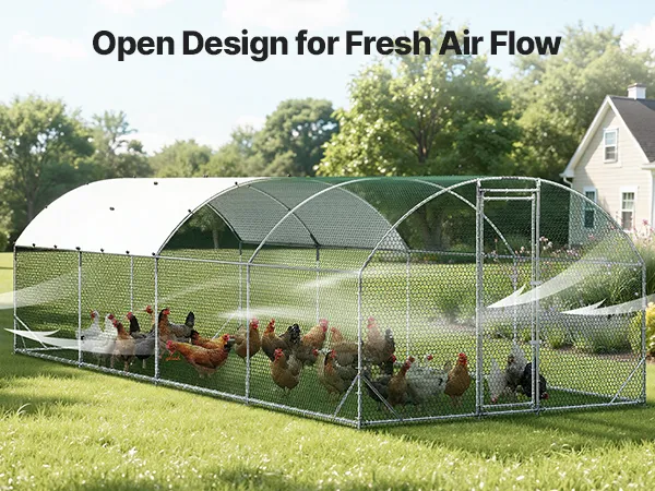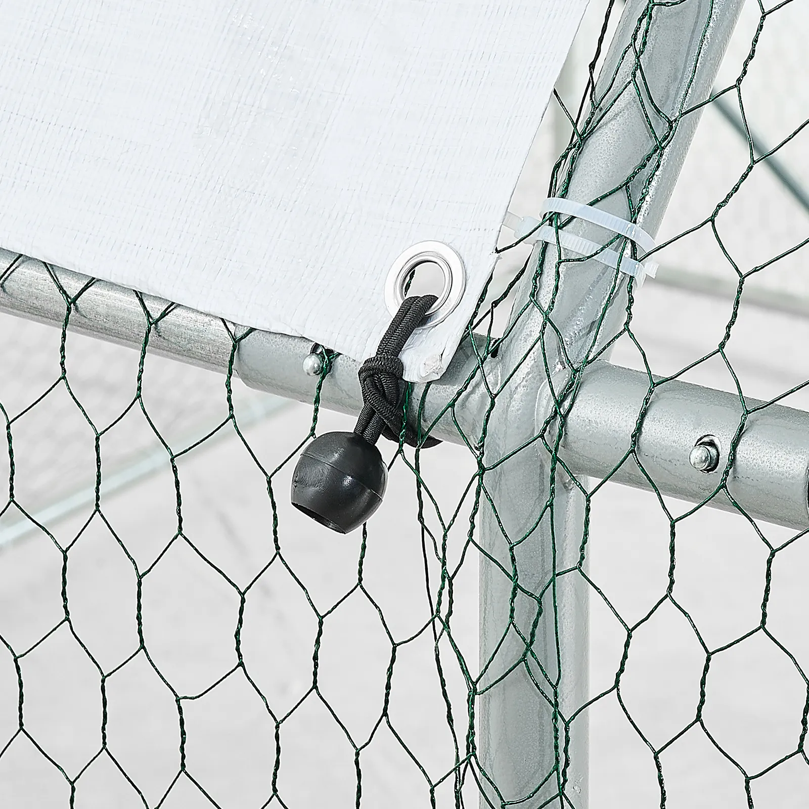 Riparo per tutte le stagioni: questo pollaio in metallo è dotato di un tetto in polietilene che può essere installato rapidamente, offrendo ombra nelle giornate di sole e riparo asciutto in caso di pioggia improvvisa