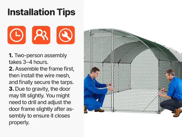 Facile da montare: il recinto per polli con tetto a cupola per giardino include tutti gli accessori necessari: guanti, picchetti e fascette. Progettato per due persone, può essere montato in circa 3-4 ore