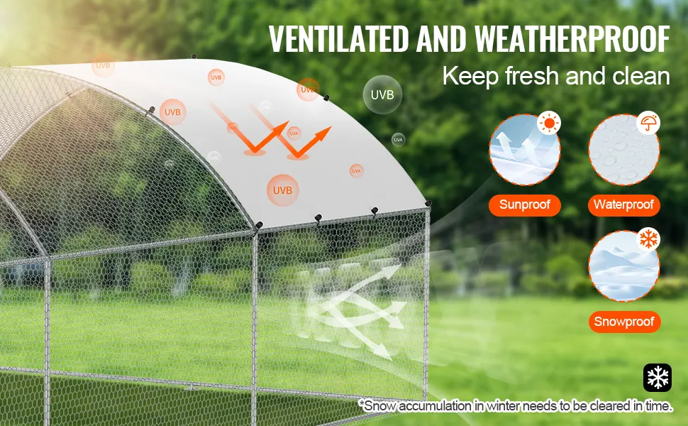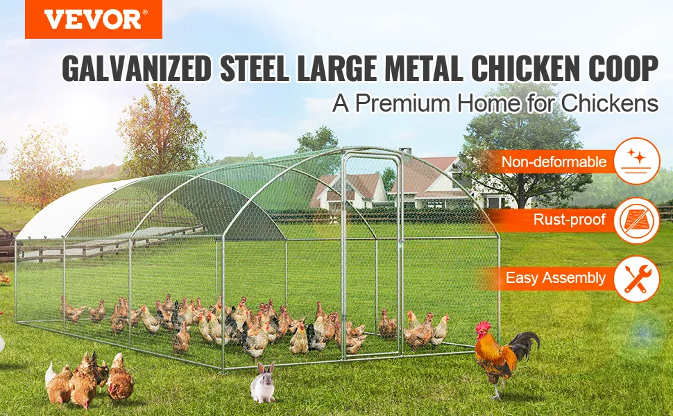 Il pollaio in metallo grande VEVOR è costruito per durare. La struttura in acciaio zincato di questo pollaio è fatta per resistere. Questa rete metallica rivestita in PVC aggiunge ulteriore durevolezza e resistenza alle intemperie. Aiuta a prevenire ruggine e corrosione, assicurando che il pollaio rimanga in buone condizioni per anni. La costruzione durevole può resistere a condizioni meteorologiche avverse, fornendo una soluzione abitativa affidabile. Non dovrai sostituirlo o ripararlo spesso, offrendo un ottimo rapporto qualità-prezzo.