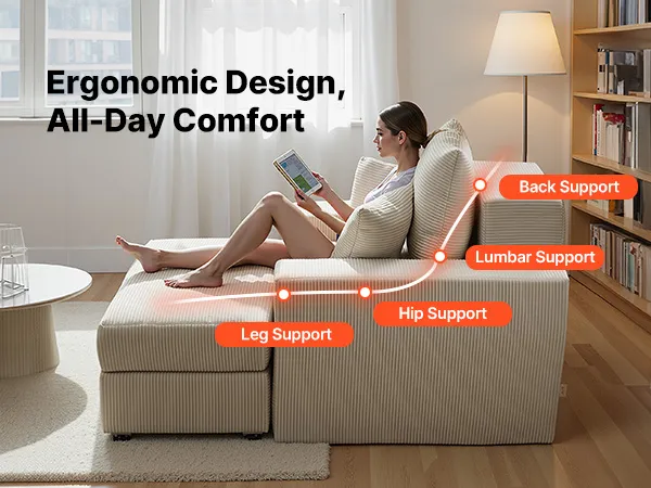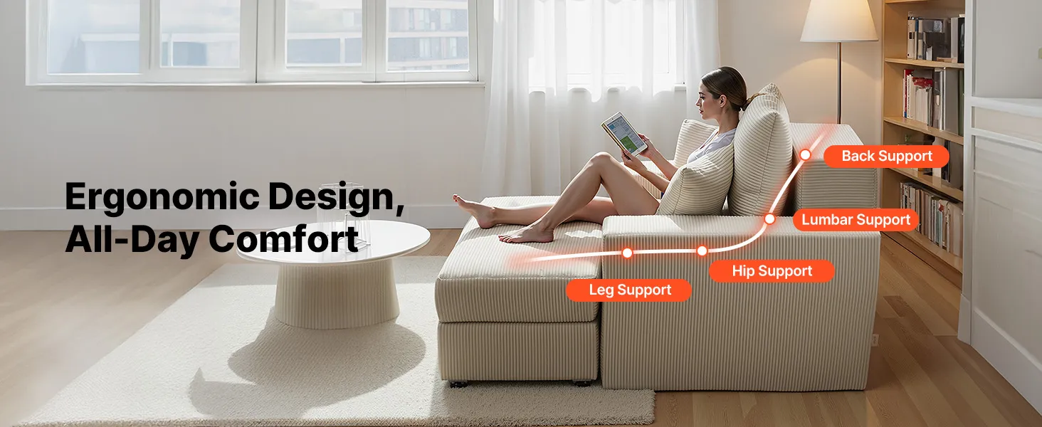 Comfort ergonomico: questa chaise longue di grandi dimensioni presenta un design ergonomico con spugna ad alta densità e molle insacchettate. Morbida ma sostenitiva, si adatta al corpo per un comfort duraturo senza cedimenti