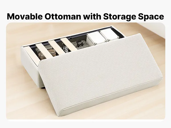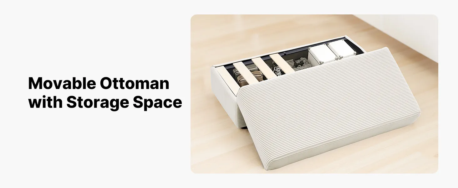 Pratico contenitore pouf: questa chaise longue include un pouf mobile che funge anche da contenitore nascosto per coperte, libri o cuscini, mantenendo il tuo spazio in ordine mentre ti rilassi comodamente
