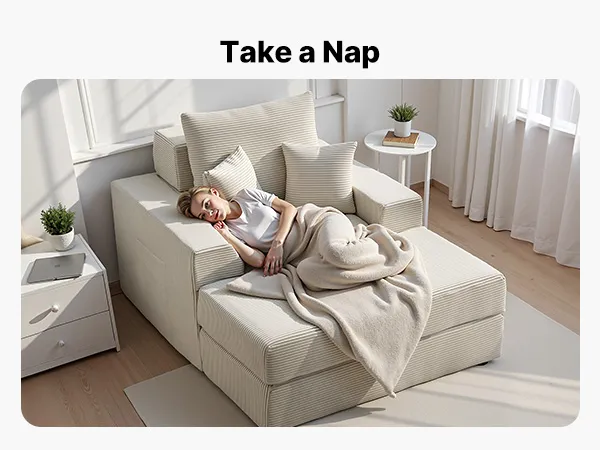 Il rivestimento di alta qualità è delicato al tatto, mentre il pouf contenitore mobile e le comode tasche laterali migliorano la tua esperienza di relax.