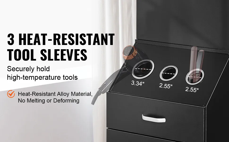 Manicotti per strumenti resistenti al calore: Realizzati in materiale in lega resistente al calore, la stazione per parrucchiere fornisce tre manicotti per strumenti termici con un design del coperchio inferiore per evitare che gli strumenti cadano, garantendo sicurezza durante l'uso.