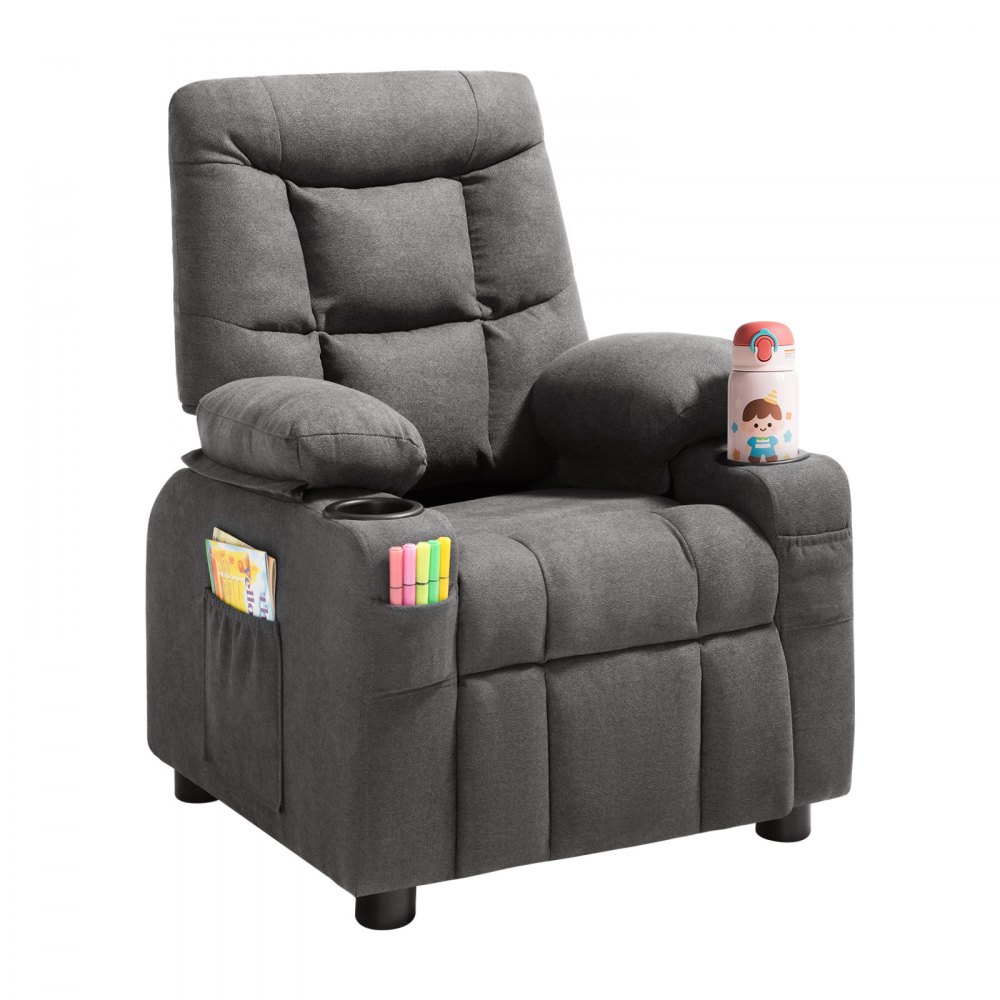 VEVOR Kids Recliner Chair, Toddler Lounger with Cup Holders & Pockets, 107° to 126° Adjustable Back, Breathable Polyester Upholstery Reclining Sofa with Foot-rest, for Boys and Girls, Children (Gray)