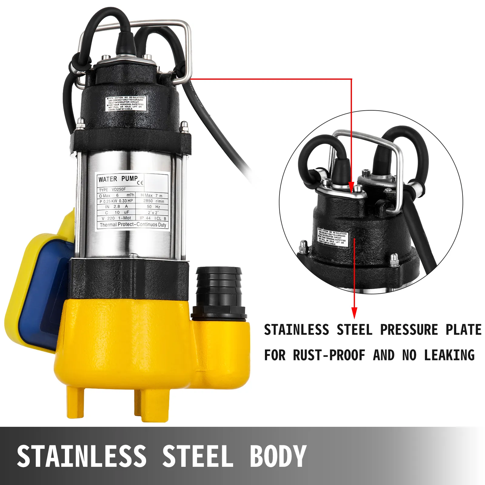 L'elenco è di circa 250 W Pompa sommergibile per acque luride. La pompa offre vantaggi quali dimensioni ridotte e leggerezza, facile rimozione e installazione conveniente, alta efficienza e risparmio energetico, affidabilità e campi. Affidabile, economico e semplice da usare, adatto per la distribuzione automatica di acqua da vasche di raccolta, irrigazione di giardini e per aumentare la pressione insufficiente dell'acqua di rete.