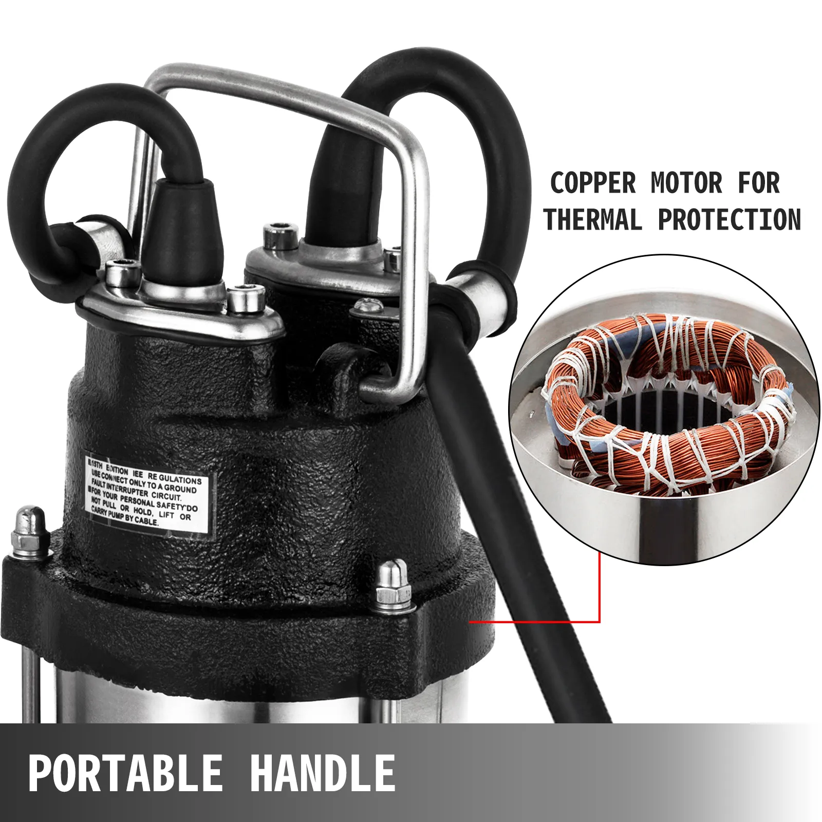 Una comoda impugnatura è progettata nella testa della pompa, impugnatura e connessione della pompa per formare un tutto. La pompa per acque luride in acciaio inossidabile è dotata di protezione termica per evitare il surriscaldamento per una maggiore durata. Protezione termica per prevenire il surriscaldamento per una maggiore durata.
