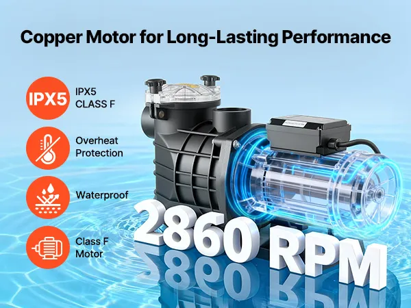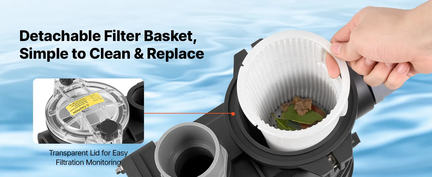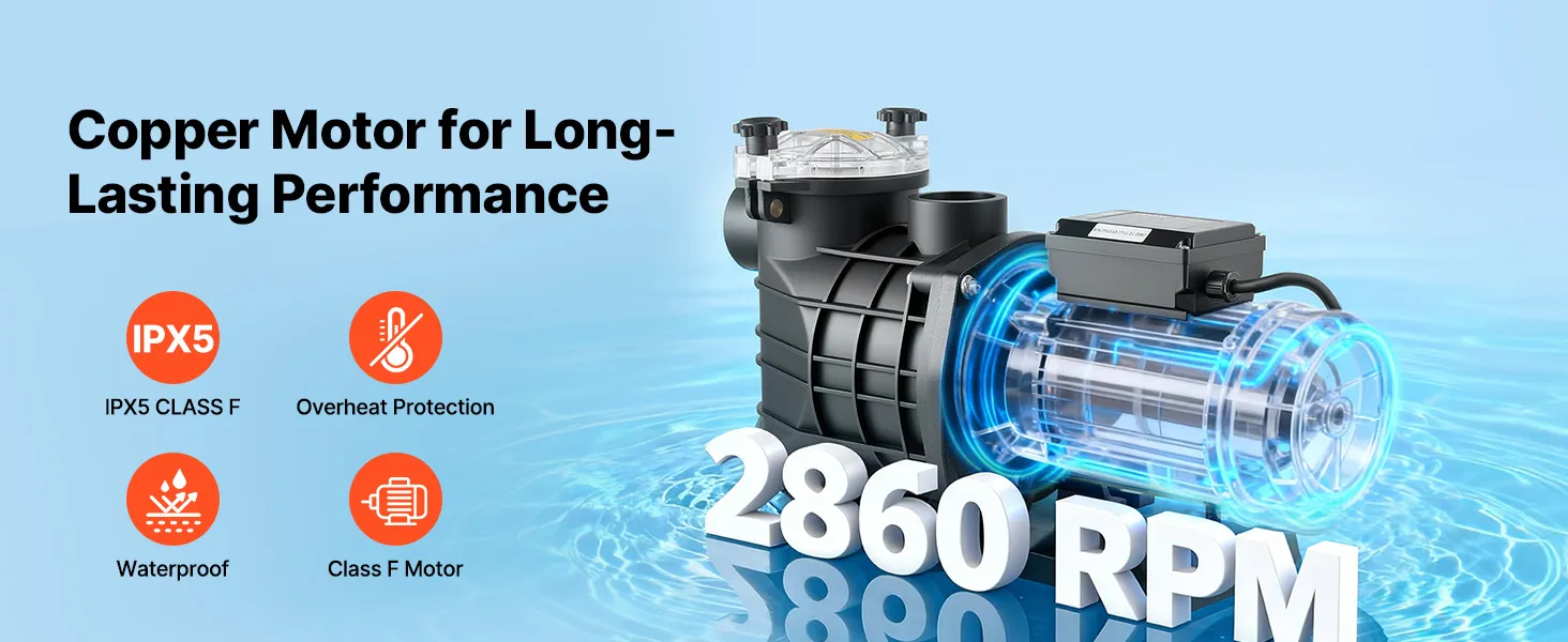 Protezione multistrato: Dotata di un ampio cestello filtrante per prefiltrare i detriti e ridurre la frequenza di pulizia, questa pompa per piscina interrata è dotata di un alloggiamento in materiale termoplastico rinforzato, impermeabilità IPX5 e un motore di classe F per un funzionamento affidabile