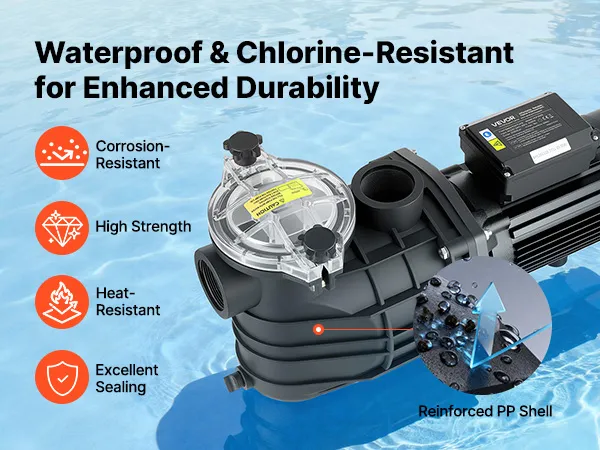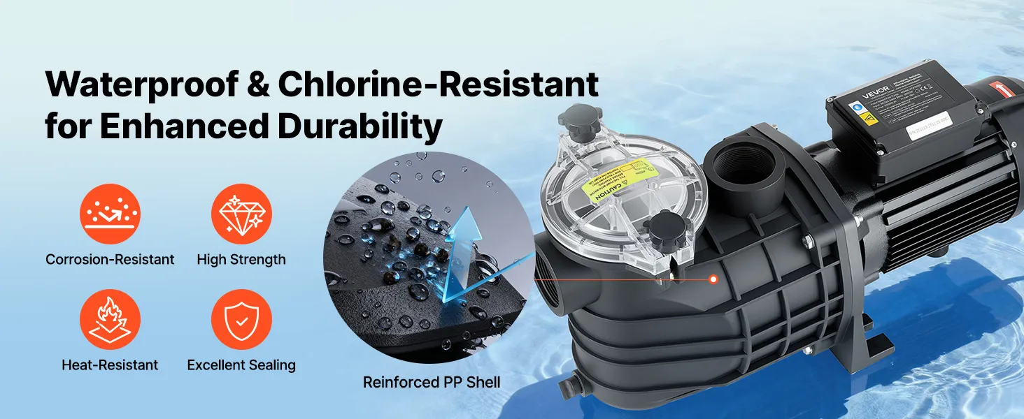 Realizzata con un materiale durevole e resistente alla corrosione, la nostra pompa di filtrazione per piscine unisce robustezza, leggerezza e lunga durata per resistere agli ambienti difficili delle piscine.