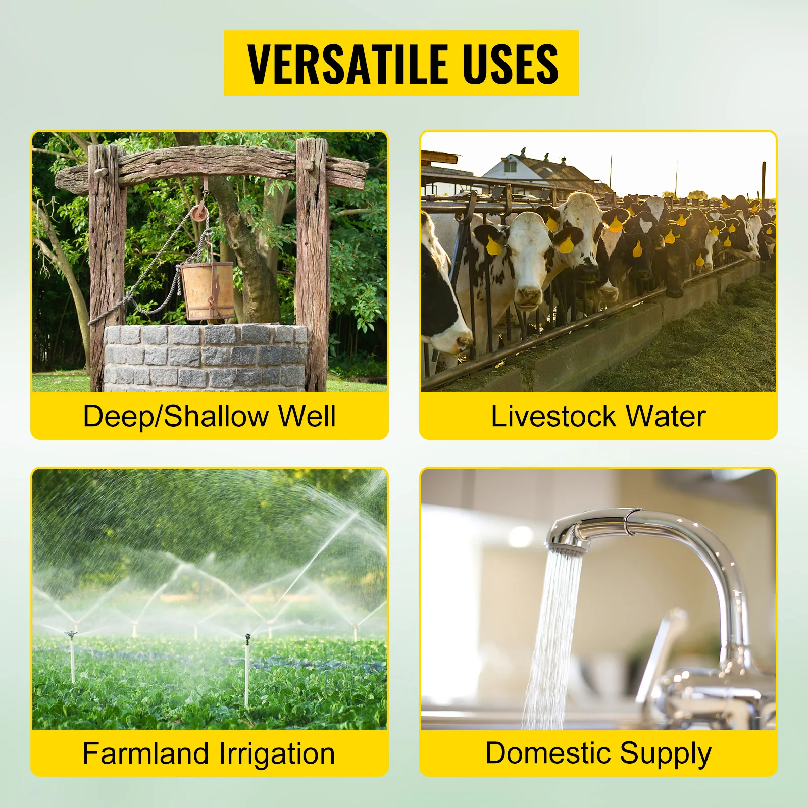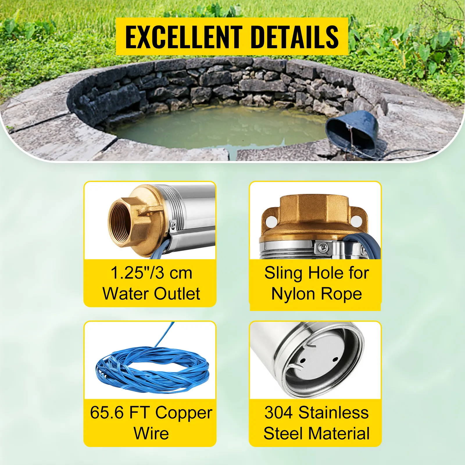 • Questa pompa sommergibile, realizzata in acciaio inossidabile 304, è una pompa da pozzo durevole che ti manterrà in uso per un paio d'anni. Inoltre, questa pompa per pozzi profondi fornisce una portata avanzata, producendo un flusso costante fino a una discreta profondità sotto la superficie. Con questa pompa per pozzi profondi, puoi ottenere acqua in modo rapido e conveniente anche da profondità maggiori.