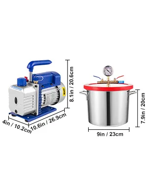 • Ampia Applicazione: il dispositivo viene fornito con una pompa per vuoto 1.8 CFM e una 2 camera a vuoto da galloni di qualità superiore. Il kit della camera a vuoto è adatto per l'aria condizionata domestica, la manutenzione dell'automobile, l'imballaggio sottovuoto, il vuoto del frigorifero e industria. Inoltre, il kit viene utilizzato anche per l'anti-schiuma di silicone, resina epossidica, olio essenziale, poliuretano, ecc.