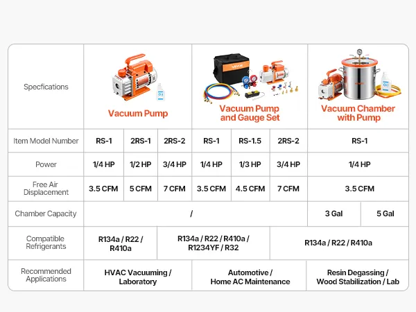 Ampia compatibilità con i refrigeranti: la pompa per vuoto è compatibile con R134a, R22, R410a e altri refrigeranti non infiammabili comuni. Ideale per la riparazione di impianti di climatizzazione per autoveicoli, la manutenzione di impianti HVAC