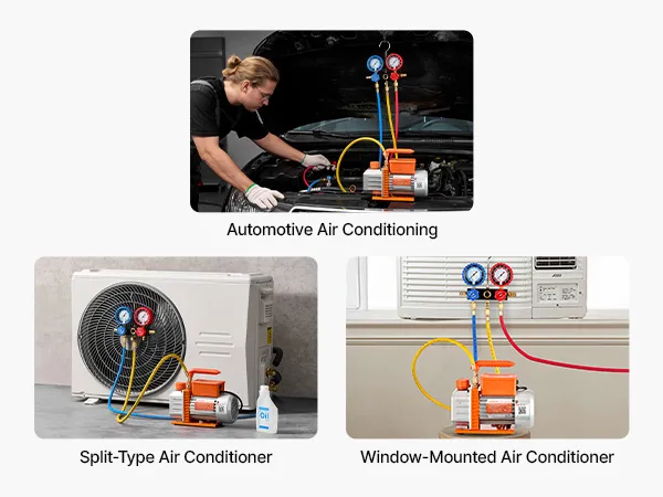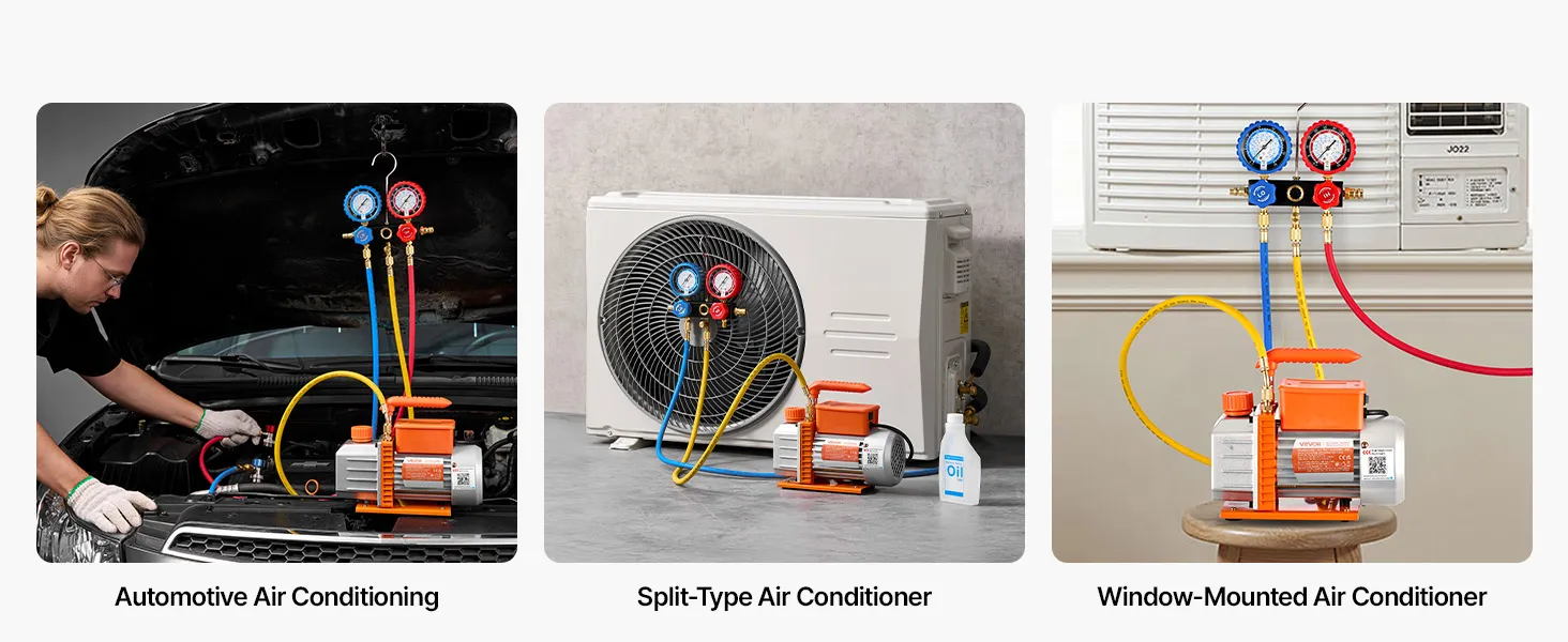 Ampia compatibilità con i refrigeranti: la pompa per vuoto è compatibile con R134a, R22, R410a, R1234YF, R32 e altri refrigeranti non infiammabili comuni. Ideale per la riparazione di impianti di climatizzazione per autoveicoli, la manutenzione di impianti HVAC