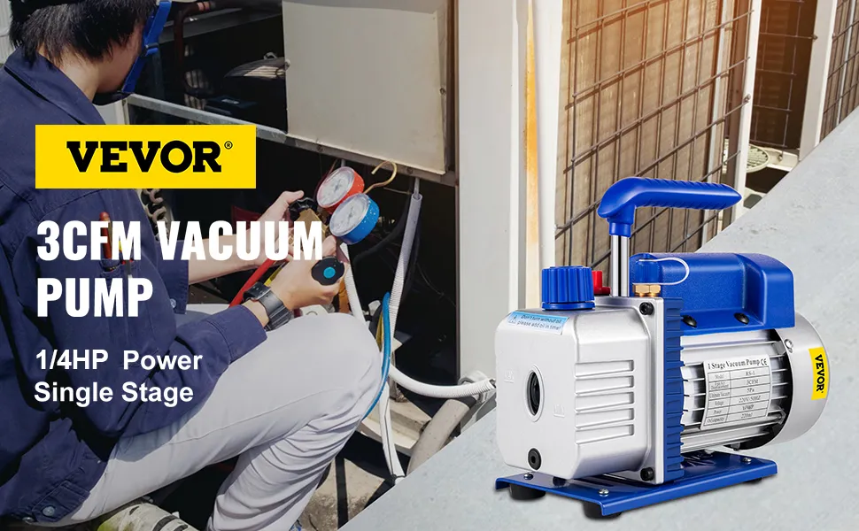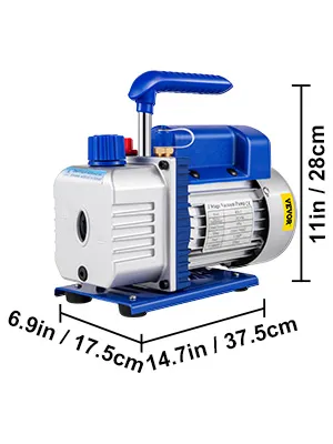 Questa pompa per vuoto è l'attrezzatura per ottenere il vuoto pompando i gas da un contenitore sigillato, particolarmente adatto per l'aria condizionata domestica, la manutenzione di automobili, il confezionamento sottovuoto e il vuoto di frigorifero. È dotato di evacuazione e di un design a palette rotanti a due stadi, e ha una struttura leggera in alluminio pressofuso, perfetta per una lunga durata.