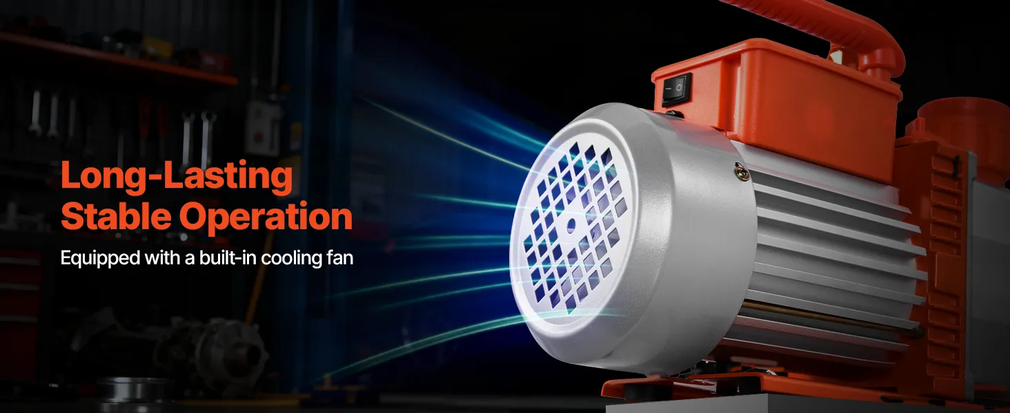 Funzionamento stabile: dotata di un motore a 4 poli, questa pompa per vuoto HVAC funziona in modo efficiente. Il suo alloggiamento in ghisa e alluminio pressofuso con ventola di raffreddamento integrata evita il surriscaldamento