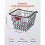 VEVOR Cestino Posteriore per Bici Medio, Cestino per Bicicletta in Filo Metallico con Luce Posteriore Riflettente e Copertura Impermeabile, Adatto alla Maggior Parte dei Portabici Posteriori