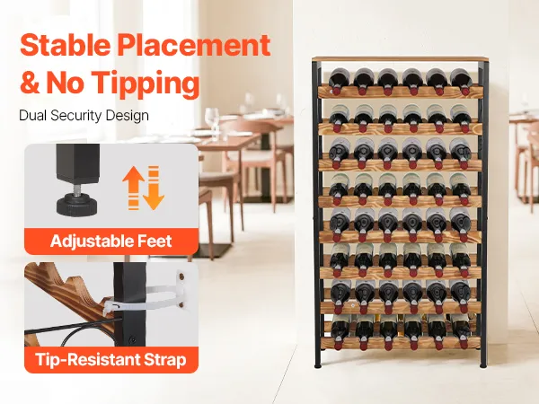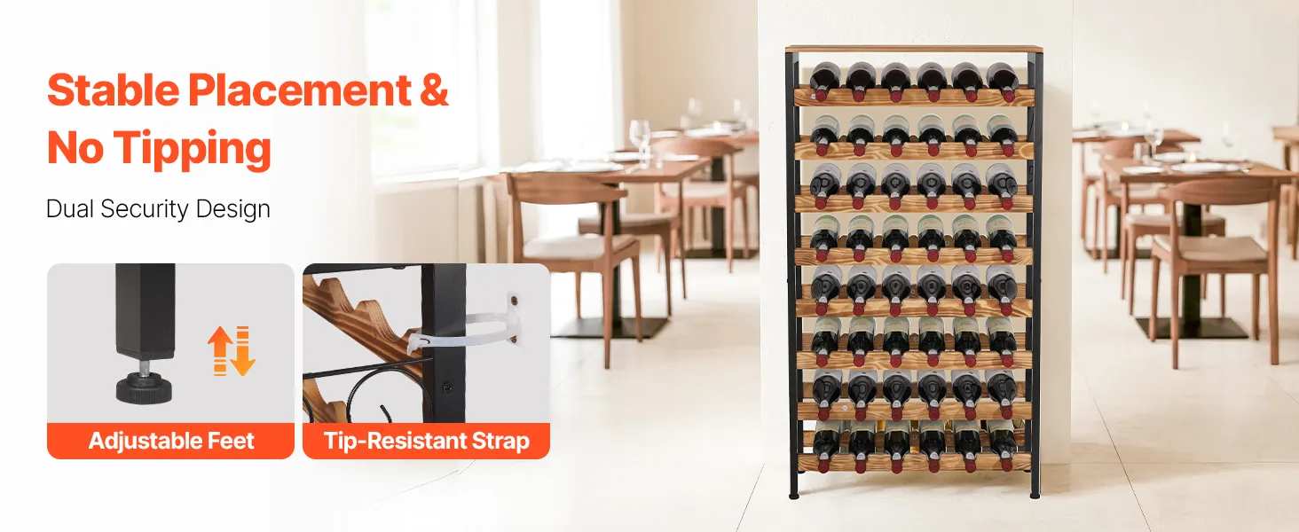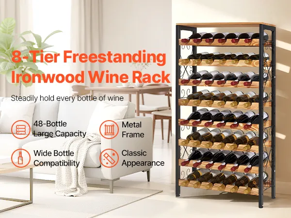 Ampia capacità: questo portabottiglie indipendente a 8 ripiani può contenere fino a 48 bottiglie. È ideale per organizzare ed esporre la tua collezione di vini e soddisfa le esigenze di stoccaggio della tua famiglia
