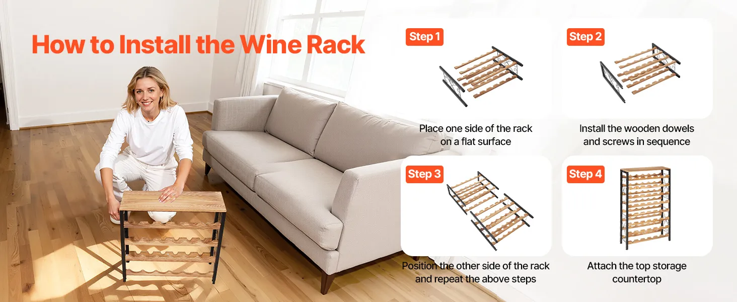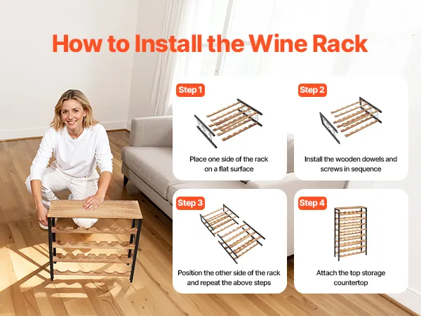 Il nostro portabottiglie è dotato di istruzioni di montaggio dettagliate: non sono necessari attrezzi o viti aggiuntivi. Basta allineare le tacche e le scanalature e premerle insieme. Anche i principianti possono completare il montaggio in pochi minuti.