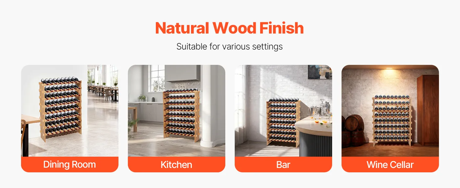 Materiali di alta qualità: il nostro portabottiglie è levigato e sbavato, quindi rifinito con una vernice trasparente, per una superficie liscia e resistente alle crepe. Il suo classico aspetto in legno naturale si adatta alla sala da pranzo