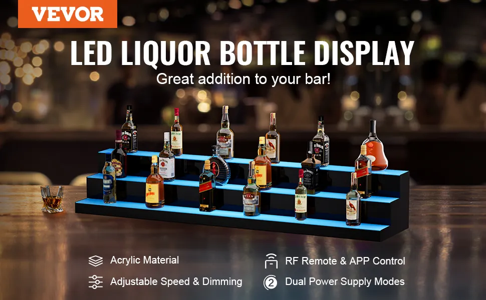 VEVOR Scaffale Portabottiglie di Vino da Bar, Scaffale da Bar Illuminato a LED Telecomando RF Controllo APP, Scaffale Illuminazione per Bevande in Acrilico 3 Ripiani, Portabottiglie 1522x300x250mm