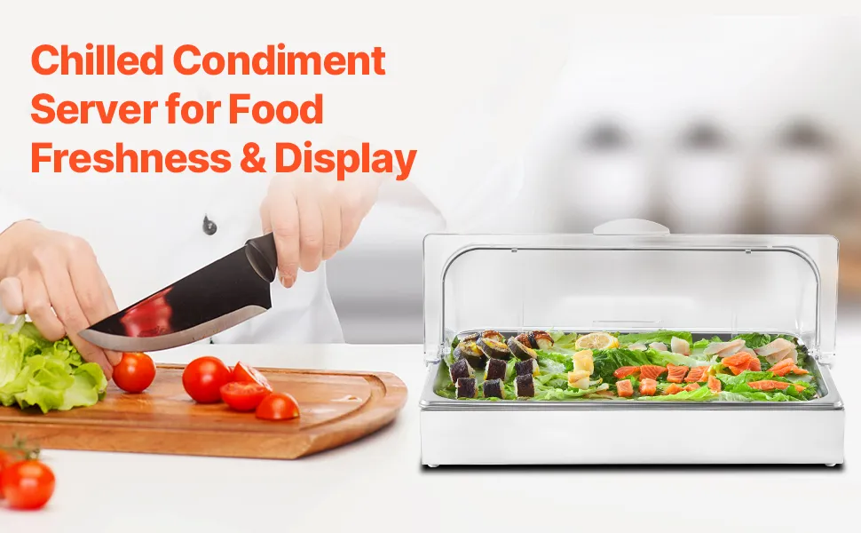 Adatto a vari ambienti, tra cui cucine, ristoranti, hotel e buffet, il nostro servizio da buffet per cibi freddi conserva in modo efficiente diversi alimenti e condimenti, aggiungendo al contempo un tocco di eleganza al tuo spazio.