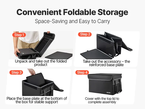 Il design pieghevole in 4 fasi crea uno spazio di archiviazione stabile per un'organizzazione flessibile. Dall'uso domestico, al deposito in auto o in viaggio, goditi un accesso rapido e un utilizzo pratico in qualsiasi momento.