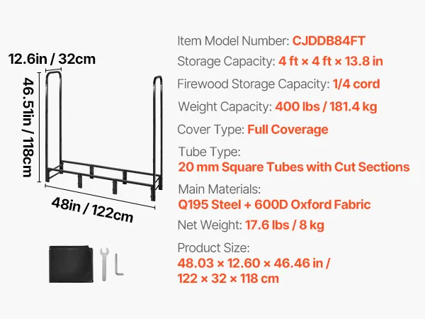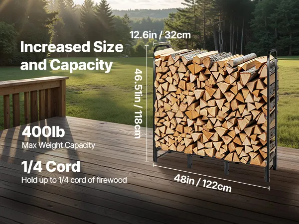 Ampia capacità di stoccaggio: con dimensioni di 122,2 x 32,1 x 117,8 cm, questo porta legna offre ampio spazio per contenere fino a 1/4 di corda di legna da ardere. È ideale per impilare e asciugare grandi quantità di legna