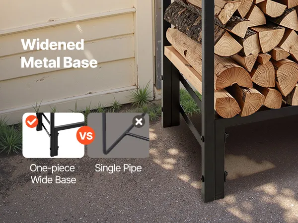 Base larga rinforzata: a differenza delle basi standard a barra singola, la nostra base con telaio largo offre maggiore equilibrio e resistenza. Il porta legna da esterno rimane stabile anche su superfici irregolari ed è meno soggetto a ribaltamento