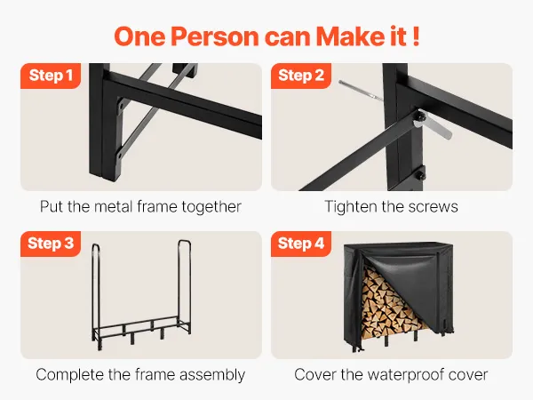 Installazione rapida e facile accesso: la combinazione di porta-legna e copertura semplifica l'installazione. Basta montare il porta-legna e stendere la copertura. Aggiungere legna per regolare l'altezza della copertura
