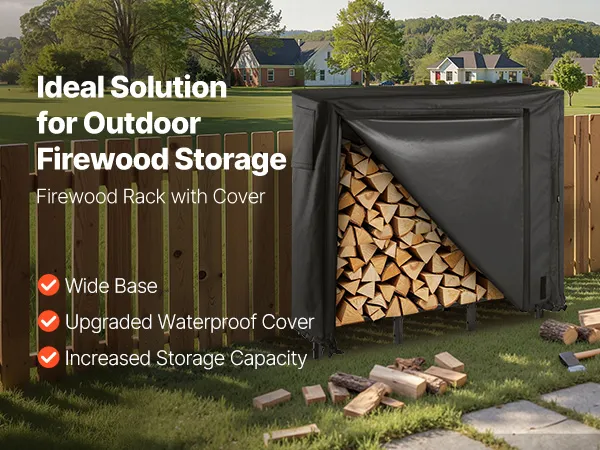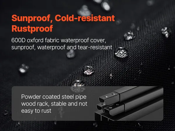 Materiale resistente: la copertura per legna da ardere inclusa è realizzata in tessuto Oxford 600D con rivestimento impermeabile in PU e protezione UV, che garantisce che non si crepi in caso di caldo o freddo estremi
