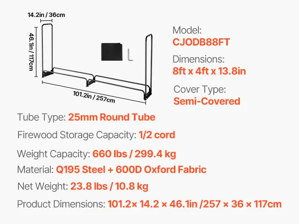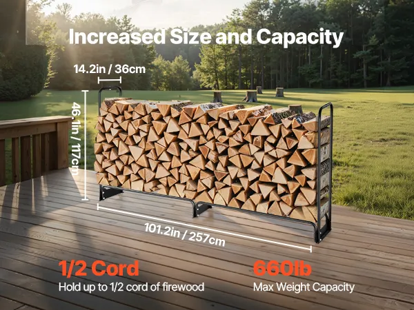 Ampia capacità di stoccaggio: con dimensioni, questo porta legna offre ampio spazio per contenere fino a mezza corda di legna da ardere. È ideale per impilare e asciugare grandi quantità di legna, adatto per verande, patii