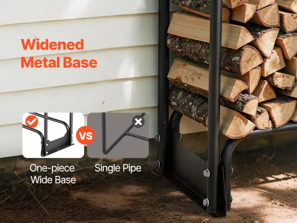Base larga rinforzata: a differenza delle basi standard a barra singola, la nostra base con telaio largo offre maggiore equilibrio e resistenza. Il porta legna da esterno rimane stabile anche su superfici irregolari ed è meno soggetto a ribaltamento