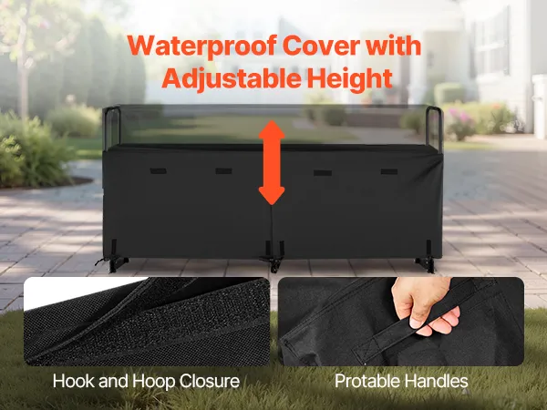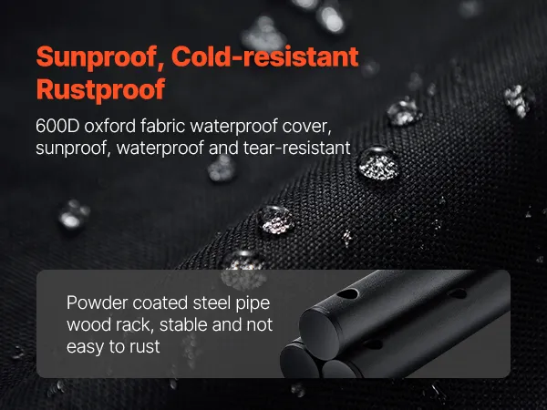 Materiale resistente: la copertura per legna da ardere inclusa è realizzata in tessuto Oxford 600D con rivestimento impermeabile in PU e protezione UV, che garantisce che non si crepi in caso di caldo o freddo estremi