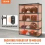 Il rack di utilità VEVOR per garage ha ripiani regolabili per soddisfare le tue specifiche esigenze di stoccaggio. Ogni ripiano può essere spostato con incrementi di 1,5 pollici. Questa flessibilità ti consente di personalizzare l'unità per adattarla a oggetti di diverse dimensioni. Che tu abbia bisogno di riporre piccole lattine o grandi elettrodomestici, questi ripiani possono essere regolati di conseguenza. Garantisce il massimo utilizzo dello spazio disponibile. Le pareti regolabili rendono questa unità versatile e adatta a molti requisiti di stoccaggio diversi. Puoi facilmente adattarla alle tue mutevoli esigenze.
