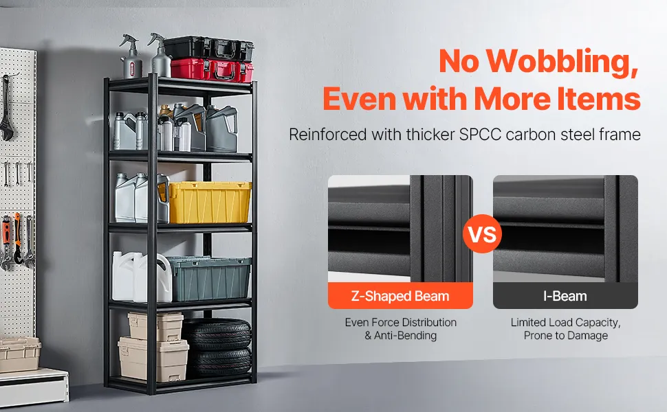 Capacità di carico di 2000 libbre: con una capacità totale fino a 2000 libbre, ogni ripiano da garage può reggere 400 libbre, consentendoti di riporre più oggetti e attrezzi nel tuo garage o magazzino