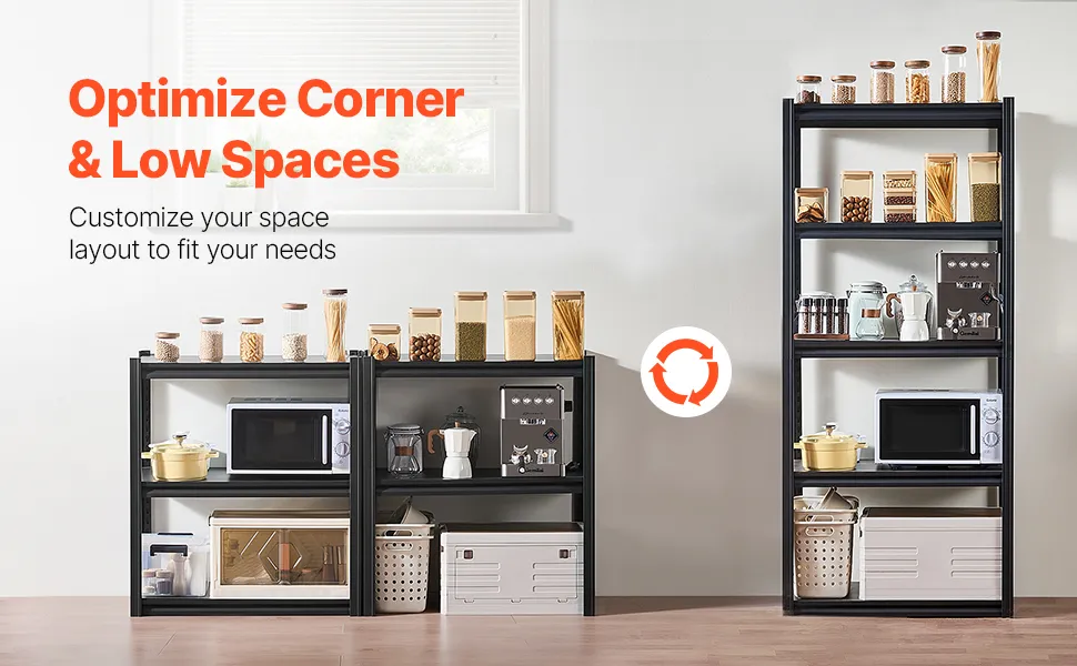 È possibile convertire facilmente la scaffalatura da garage in due ripiani separati per soddisfare le esigenze di stoccaggio in vari spazi, che si tratti del garage, della cucina o della dispensa.