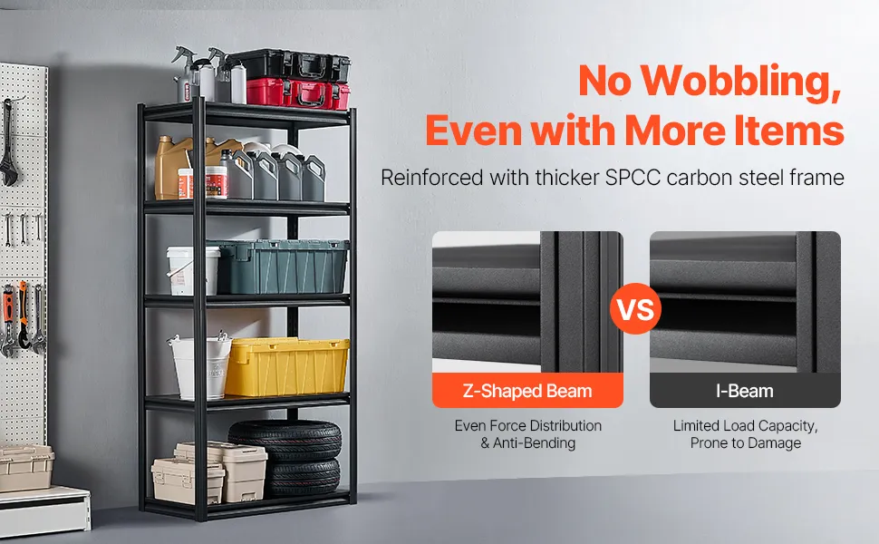 Capacità di carico di 2000 libbre: con una capacità totale fino a 2000 libbre, ogni ripiano da garage può reggere 400 libbre, consentendoti di riporre più oggetti e attrezzi nel tuo garage o magazzino