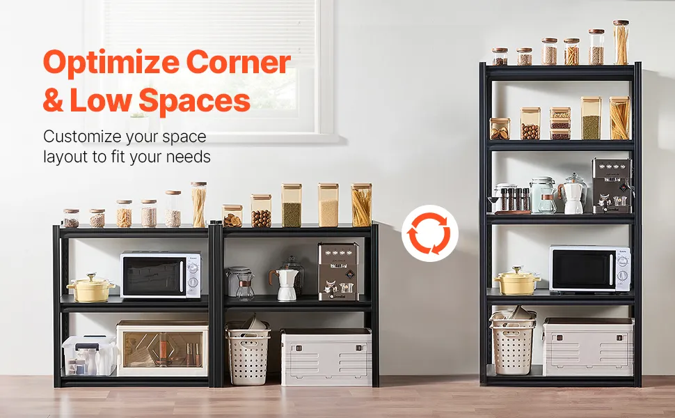 È possibile convertire facilmente la scaffalatura da garage in due ripiani separati per soddisfare le esigenze di stoccaggio in vari spazi, che si tratti del garage, della cucina o della dispensa.