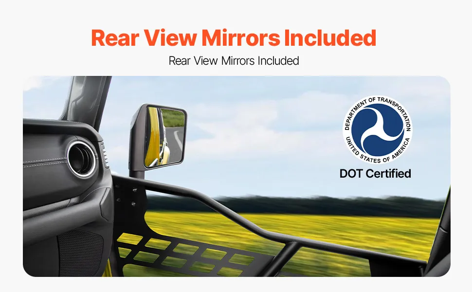 La porta tubolare Jeep è dotata di specchietti laterali e di tutto l'hardware di montaggio necessario per una facile installazione sulle porte tubolari. Mantieni la visibilità posteriore durante la guida, assicurando cambi di corsia più sicuri e una migliore consapevolezza sulla strada.