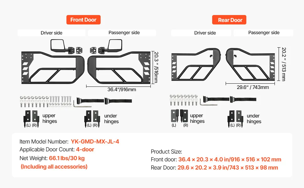 Compatibilità: Progettate per la Jeep Wrangler JL 2018-2024 e la Jeep Gladiator JT 2020-2024 con un look robusto in stile avventura, queste porte tubolari si adattano sia al lato anteriore che posteriore del conducente e del passeggero