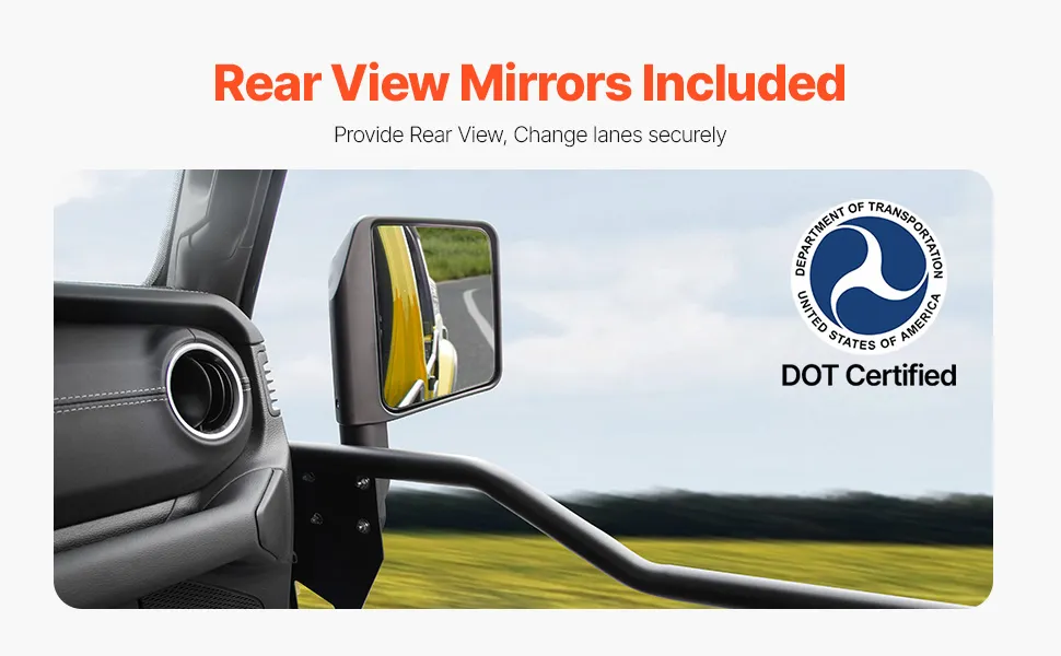 La porta tubolare Jeep è dotata di specchietti laterali e di tutto l'hardware di montaggio necessario per una facile installazione sulle porte tubolari. Mantieni la visibilità posteriore durante la guida, assicurando cambi di corsia più sicuri e una migliore consapevolezza sulla strada.