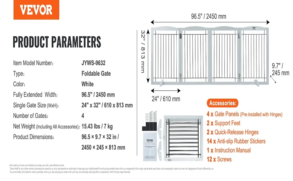 Il cancelletto per animali domestici VEVOR è espandibile. Si adatta sia a spazi ampi che stretti. Questa caratteristica ti consente di utilizzarlo facilmente in diverse parti della casa, a seconda delle necessità. Puoi regolarne la larghezza per adattarla a diverse aree della casa. Che tu debba bloccare una piccola porta o che tu abbia predisposto passaggi più ampi, questo cancelletto può adattarsi a te. L'espandibilità assicura che la vestibilità sia perfettamente assicurata. Quindi, gli animali domestici non si infilano negli spazi vuoti. In altre parole, fornisce una soluzione versatile per i proprietari di animali domestici con esigenze di spazio variabili. Grazie a questa caratteristica, gli utenti possono utilizzarlo efficacemente in diverse parti delle loro case su richiesta.