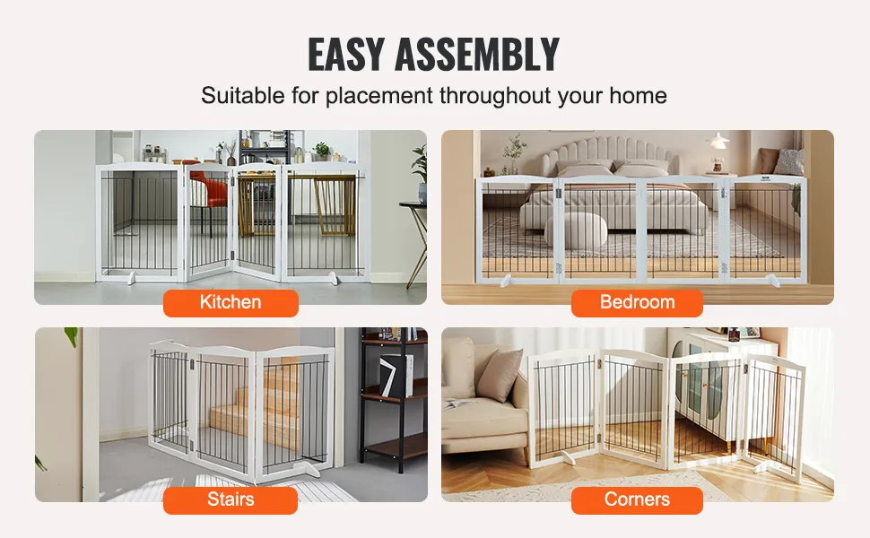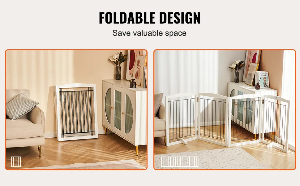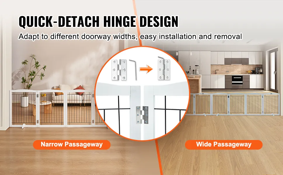 Il nostro cancelletto per cani autoportante non richiede alcun montaggio a parete. Ciò significa che puoi utilizzarlo senza preoccuparti di danneggiare le pareti. Il cancelletto è autonomo, offrendo una barriera comoda e sicura per i tuoi animali domestici. È particolarmente utile per gli affittuari o per coloro che vogliono evitare modifiche permanenti alle loro case. Il design autoportante del cancelletto assicura che i tuoi pavimenti rimangano intatti e non danneggiati. Una soluzione pratica per contenere gli animali domestici senza compromettere la struttura della tua casa.