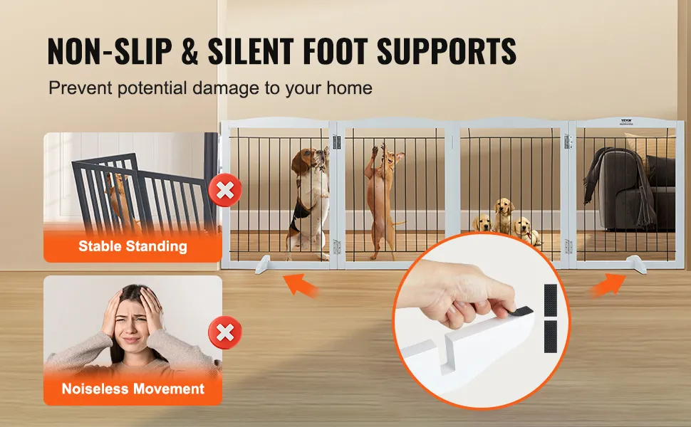 Ha un supporto silenzioso per i piedi. Ciò garantisce un funzionamento silenzioso, così puoi usare il cancello senza fare rumore che potrebbe infastidire i tuoi animali domestici o i membri della famiglia. Il supporto silenzioso mantiene il cancello stabile senza alcun suono indesiderato, il che è particolarmente utile di notte o durante i periodi di silenzio. Il funzionamento silenzioso assicura un ambiente tranquillo nella tua casa. È un elemento di design razionale che migliora l'usabilità e la praticità complessiva del cancello.