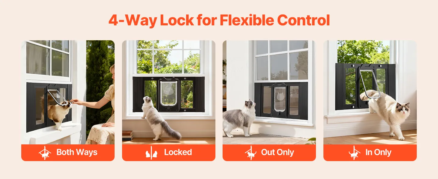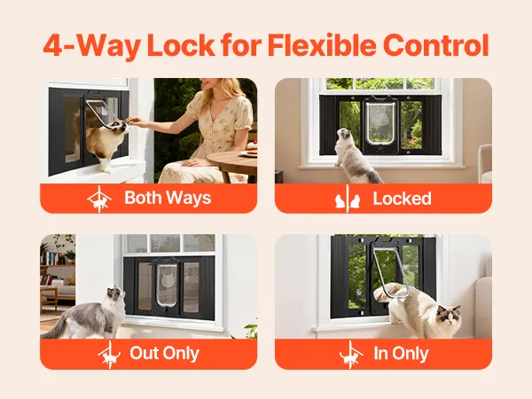 Sistema di chiusura a 4 vie: consente di scegliere tra la modalità solo ingresso, solo uscita, accesso bidirezionale o blocco completo. Questa gattaiola con finestra in alluminio offre al tuo gatto flessibilità di movimento