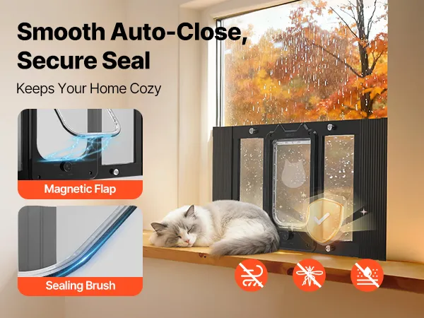 Chiusura automatica fluida e tenuta stagna: la patta magnetica si abbina a un bordo spazzolato per una chiusura automatica fluida e silenziosa. La nostra porta per animali domestici con finestra aiuta a mantenere il tuo spazio interno caldo