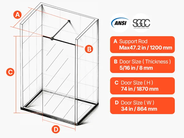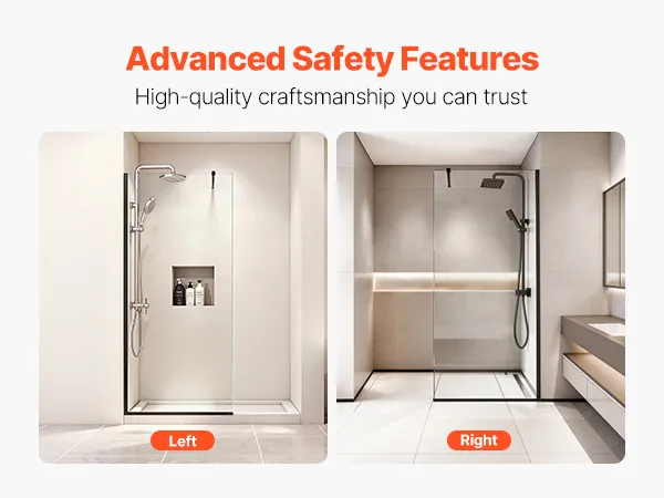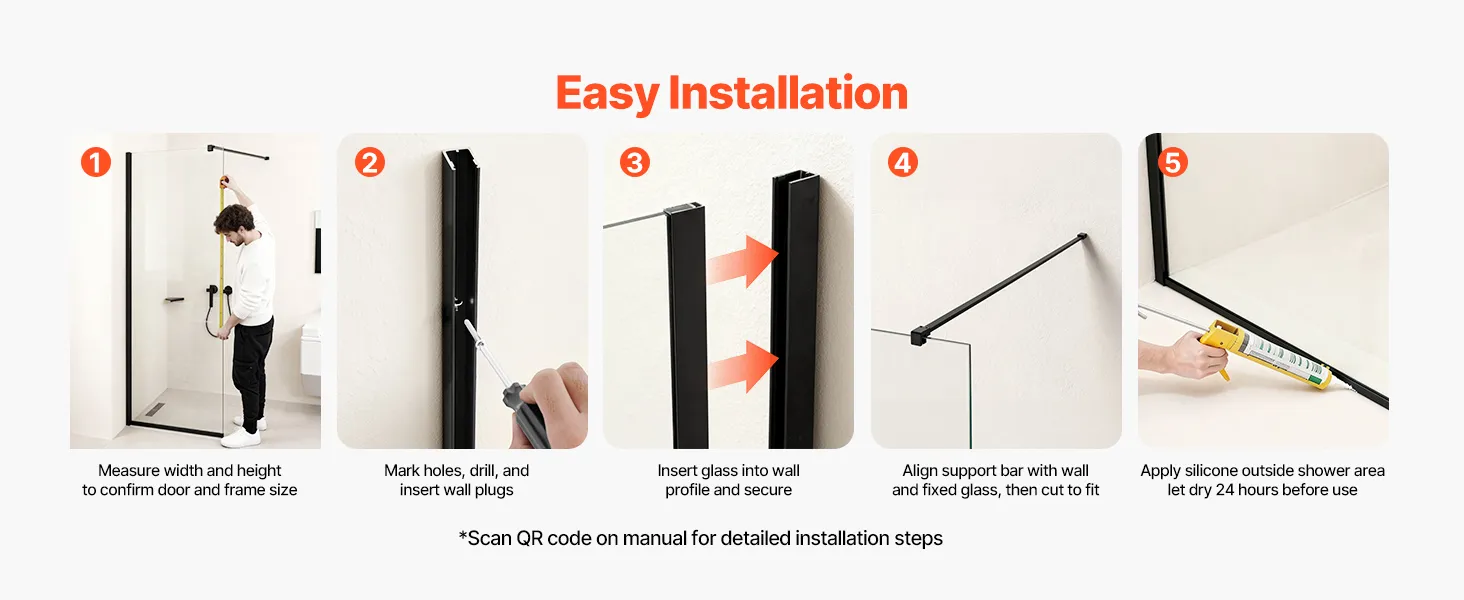 Imballaggio sicuro e installazione semplice: L'imballaggio protettivo multistrato mantiene la parete da doccia in vetro al sicuro durante la consegna. Le istruzioni chiare e la ferramenta etichettata sono incluse per un'installazione rapida, semplice e sicura