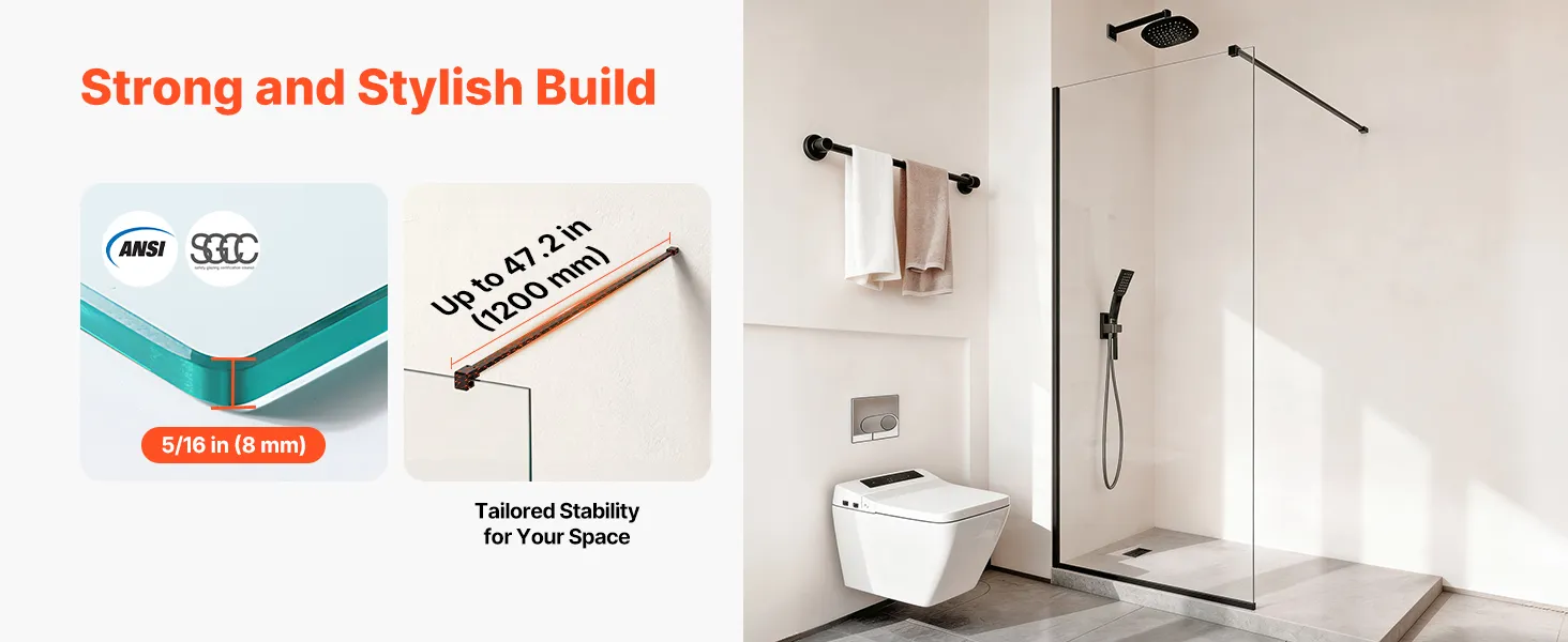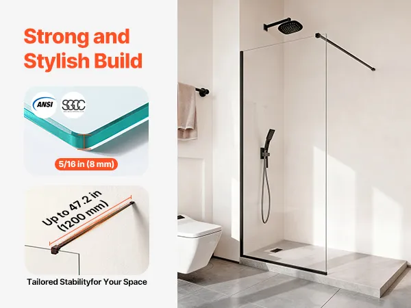Trasparente e resistente per l'uso quotidiano: Il nostro pannello doccia fisso in vetro è realizzato in vetro temperato da 8 mm per una trasparenza e una resistenza durature. È testato per resistere agli urti quotidiani e agli sbalzi di temperatura, offre al tuo bagno bellezza e prestazioni affidabili a lungo termine